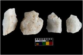 | Description / विवरण | There are n-4 of utilized worked flake cores. Some of them have bulge of percussion and some are flat flakes. |