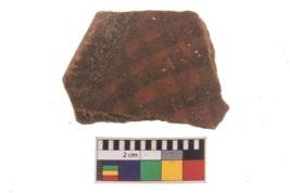 | Description / विवरण | Specimen of black on red ware with decorative geometric Net motif painting. |