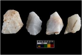 | Description / विवरण | There are n-4 of utilized worked flake cores. Some of them have bulge of percussion and some are flat flakes. |