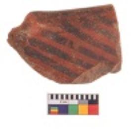 | Description / विवरण | Specimen of potsherd with decorative geometric Linear Pattern painting, Type Black on Red Ware . |