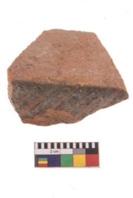 | Description / विवरण | Specimen of potsherd with black decorative geometric painting. Type Black on Red Ware . |