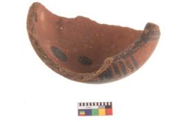 | Description / विवरण | Specimen of potsherd with black decorative geometric painting. Type Black on Red Ware . |