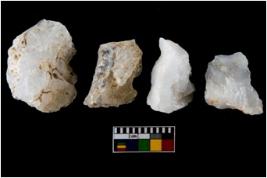 | Description / विवरण | There are n-4 of utilized worked flake cores. Some of them have bulge of percussion and some are flat flakes. |