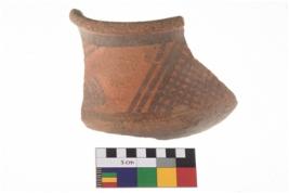 | Description / विवरण | Specimen of potsherd with black decorative geometric painting . |