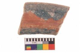 | Description / विवरण | A specimen of a glazed ware potsherd with bluish painting over it. |
