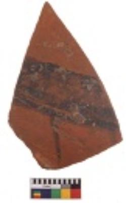 | Description / विवरण | Specimen of black on red ware with decorative black pigment. |