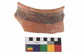| Description / विवरण | Specimen of potsherd with black decorative geometric painting . |