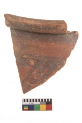 | Description / विवरण | Specimen of potsherd with black decorative geometric painting. Type Black on Red Ware . |