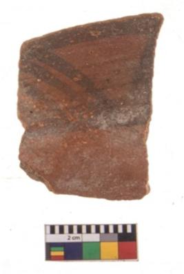 | Description / विवरण | Specimen of potsherd with black decorative geometric painting. Type Black on Red Ware . |