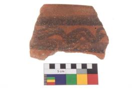 | Description / विवरण | Specimen of potsherd with black decorative geometric painting . |