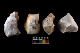 | Description / विवरण | There are n-4 of intact cores. Out of them 1 is made up Chalcedony and 3 are made up of Chert.There are multidirectional irregular dominant scar pattern on both dorsal and ventral face of the cores. |