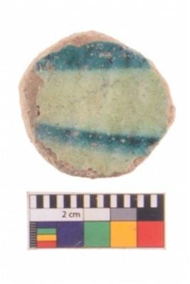 | Description / विवरण | A specimen of a glazed ware potsherd. With bluish painting over it. |