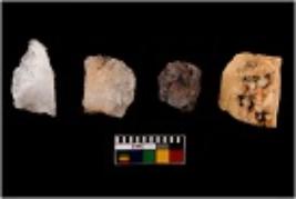 | Description / विवरण | Specimen of cores with visible weathered cortex and few broad fluted marks. Almost all are irregular in shape and size. Most of them are having sharp edges. |