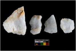 | Description / विवरण | There are n-4 of utilized worked flake cores. Some of them have bulge of percussion and some are flat flakes. |