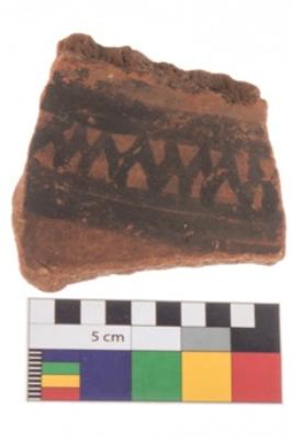 | Description / विवरण | Specimen of potsherd with black decorative geometric painting . |
