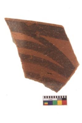 | Description / विवरण | Specimen of potsherd with black decorative geometric painting. Type Black on Red Ware . |