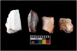 | Description / विवरण | There are n-4 of intact cores. Out of them 1 is made up Chalcedony and 3 are made up of Chert.There are multidirectional irregular dominant scar pattern on both dorsal and ventral face of the cores. |