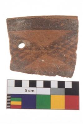 | Description / विवरण | Specimen of potsherd with black decorative geometric painting . |
