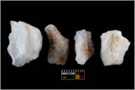 | Description / विवरण | There are n-4 of utilized worked flake cores. Some of them have bulge of percussion and some are flat flakes. |
