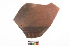 | Description / विवरण | Specimen of black on red ware with decorative geometric Vertical lines painting. |