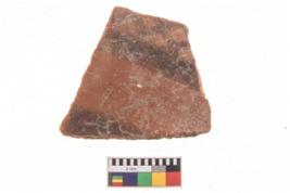 | Description / विवरण | Specimen of black on red ware with decorative geometric A row of latticed diamonds set in horizontal bands but having groups of oblique lines at intervals painting. |