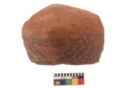 | Description / विवरण | Specimen of potsherd with black decorative geometric painting. Type Black on Red Ware . |