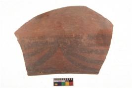 | Description / विवरण | Specimen of potsherd with black decorative geometric painting. Type Black on Red Ware . |