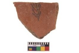 | Description / विवरण | Specimen of black on red ware with decorative geometric Plant motif painting. |