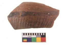| Description / विवरण | Specimen of potsherd with black decorative geometric painting. Type Black on Red Ware . |