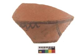 | Description / विवरण | Specimen of potsherd with black decorative geometric painting. Type Black on Red Ware . |