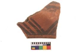 | Description / विवरण | Specimen of potsherd with black decorative geometric painting. Type Black on Red Ware . |