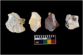 | Description / विवरण | There are n-4 of intact cores. Out of them 1 is made up Chalcedony and 3 are made up of Chert.There are multidirectional irregular dominant scar pattern on both dorsal and ventral face of the cores. |