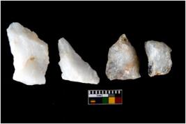 | Description / विवरण | There are n-4 of utilized worked flake cores. Some of them have bulge of percussion and some are flat flakes. |