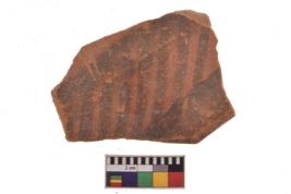 | Description / विवरण | Specimen of black on red ware with decorative geometric Outcurved lines painting. |
