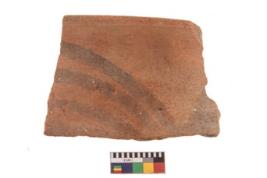 | Description / विवरण | Specimen of potsherd with black decorative geometric painting. Type Black on Red Ware . |