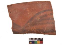 | Description / विवरण | Specimen of black on red ware with decorative geometric Its decorated with two horizontal bands with sets of triple arches painting. |