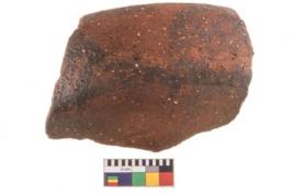 | Description / विवरण | Specimen of potsherd with black decorative geometric painting. Type Black on Red Ware . |