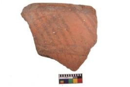 | Description / विवरण | Specimen of black on red ware with decorative geometric Outcurved lines painting. |