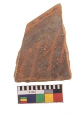 | Description / विवरण | Specimen of potsherd with black decorative geometric painting. Type Black on Red Ware . |