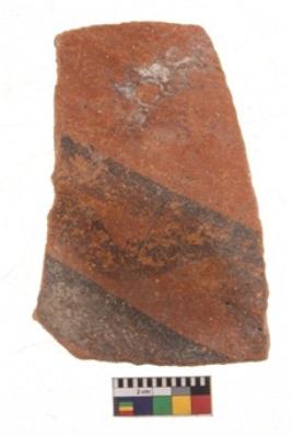 | Description / विवरण | Specimen of potsherd with black decorative geometric painting. Type Black on Red Ware . |