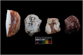 | Description / विवरण | There are n-4 of intact cores. Out of them 1 is made up Chalcedony and 3 are made up of Chert.There are multidirectional irregular dominant scar pattern on both dorsal and ventral face of the cores. |