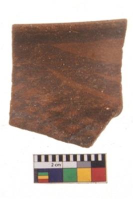 | Description / विवरण | Specimen of potsherd with black decorative geometric painting. Type Black on Red Ware . |