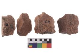 | Description / विवरण | There are n-4 of utilized flake cores. There are multidirectional irregular dominant scar pattern on both dorsal and ventral face of the cores. |