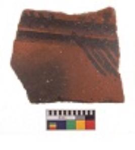 | Description / विवरण | Specimen of black on red ware with decorative black pigment. |