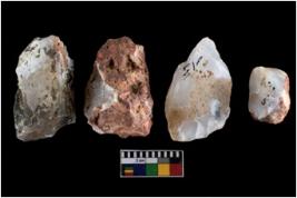 | Description / विवरण | There are n-4 of intact cores. Out of them 1 is made up Chalcedony and 3 are made up of Chert.There are multidirectional irregular dominant scar pattern on both dorsal and ventral face of the cores. |