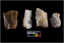 | Description / विवरण | There are n-4 of intact cores. Out of them 1 is made up Chalcedony and 3 are made up of Chert.There are multidirectional irregular dominant scar pattern on both dorsal and ventral face of the cores. |
