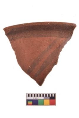 | Description / विवरण | Specimen of black on red ware with decorative geometric Outcurved lines painting. |