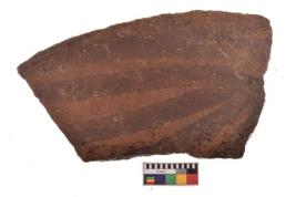 | Description / विवरण | Specimen of black on red ware with decorative geometric Its decorated with two horizontal bands with sets of triple arches painting. |