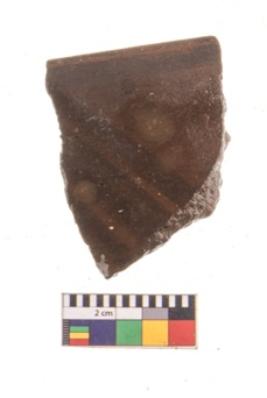 | Description / विवरण | Specimen of potsherd with black decorative geometric painting. Type Black on Red Ware . |