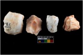 | Description / विवरण | There are n-4 of intact cores. Out of them 1 is made up Chalcedony and 3 are made up of Chert.There are multidirectional irregular dominant scar pattern on both dorsal and ventral face of the cores. |